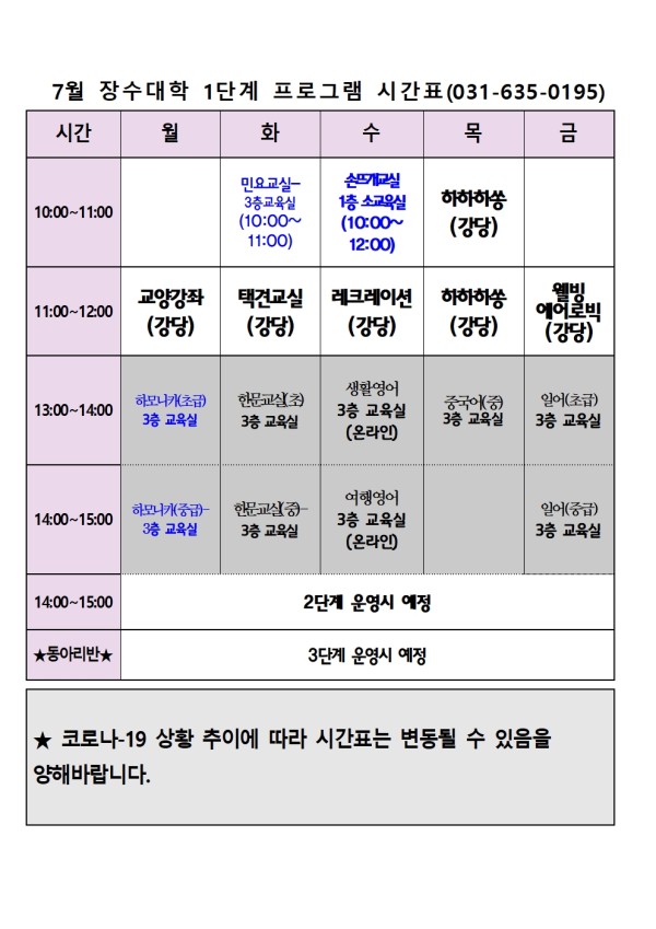 [공지] 2021년 7월 장수대학 프로그램 시간표