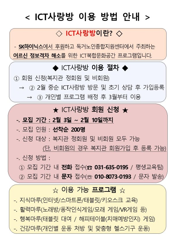[모집] 2021년 ICT사랑방 이용회원 모집