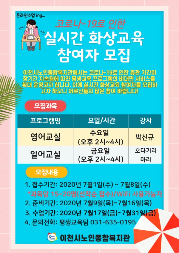 [공지] 코로나-19 휴관기간 평생교육 온라인 강의 수업참여자 모집 및 안내문