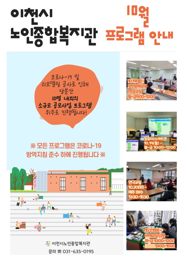 [공지] 2020년 10월 이천시노인종합복지관 진행 프로그램 안내