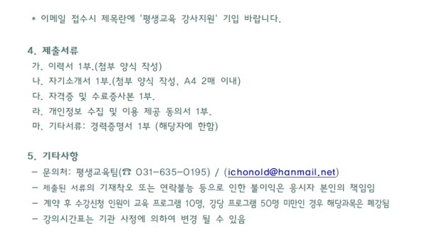 [공지] 2020년 이천시노인종합복지관 평생교육 강사 모집 공고
