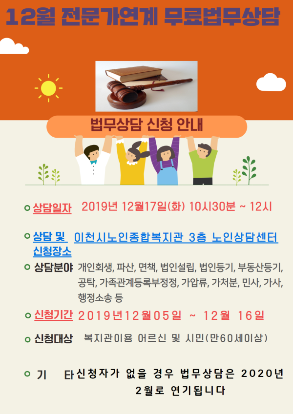 2019년 12월 전문가연계 무료법무상담 신청 안내