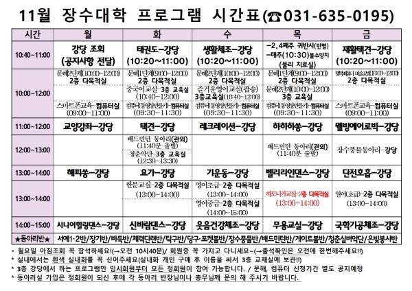 [공지] 2019년 11월 장수대학 프로그램 시간표(수정)
