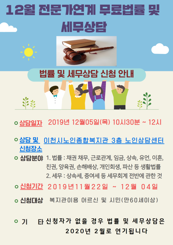 2019년 12월 전문가연계 무료 법률 및 세무상담 신청 안내