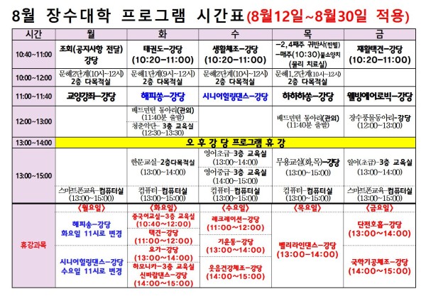 [공지] 2019년 8월 장수대학 프로그램 시간표