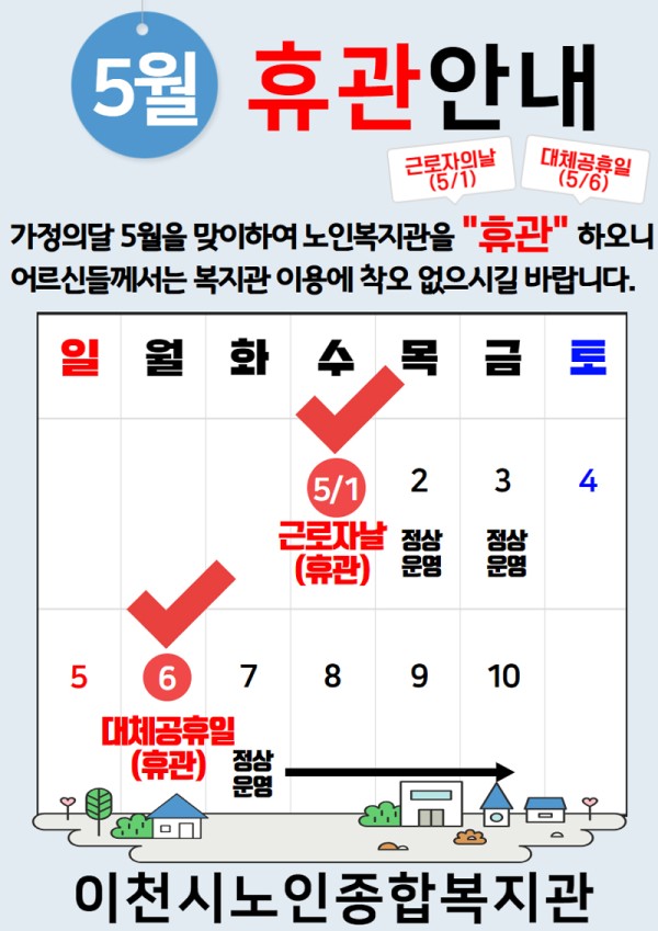 [공지] 5월 복지관 휴관안내