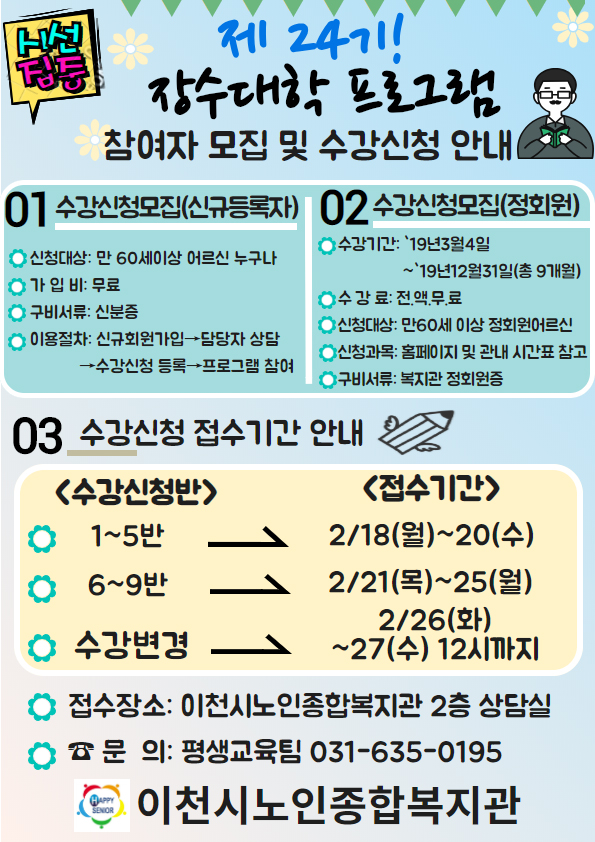 2019년도 제24기 장수대학 프로그램 참여자 모집 및 수강신청 안내