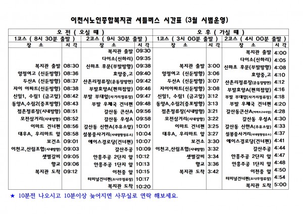 3월부터 셔틀버스 운행시간이 40분 앞당겨진 시간으로 시범 운행됩니다.