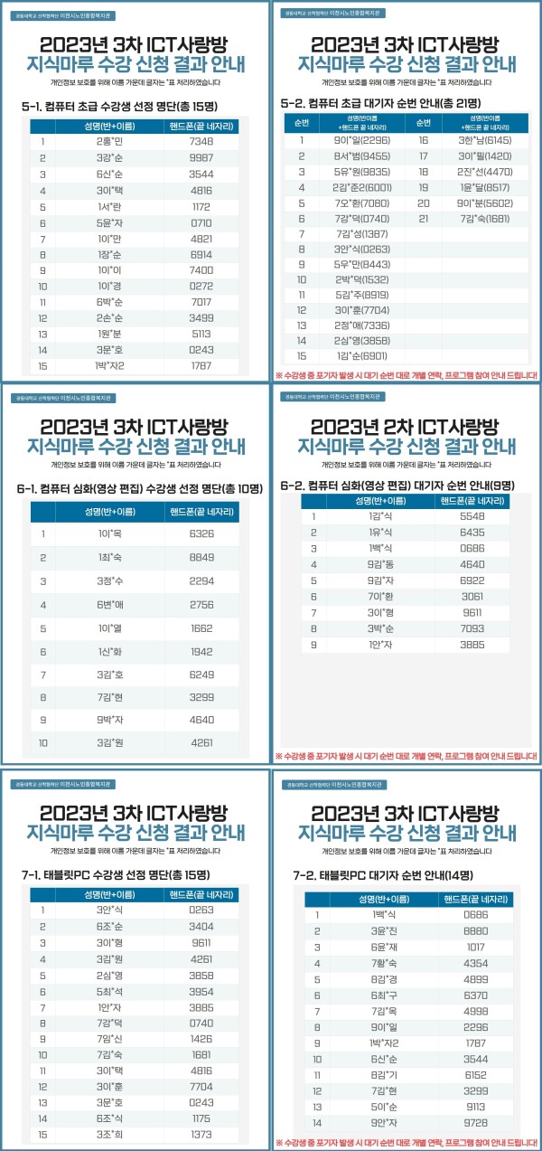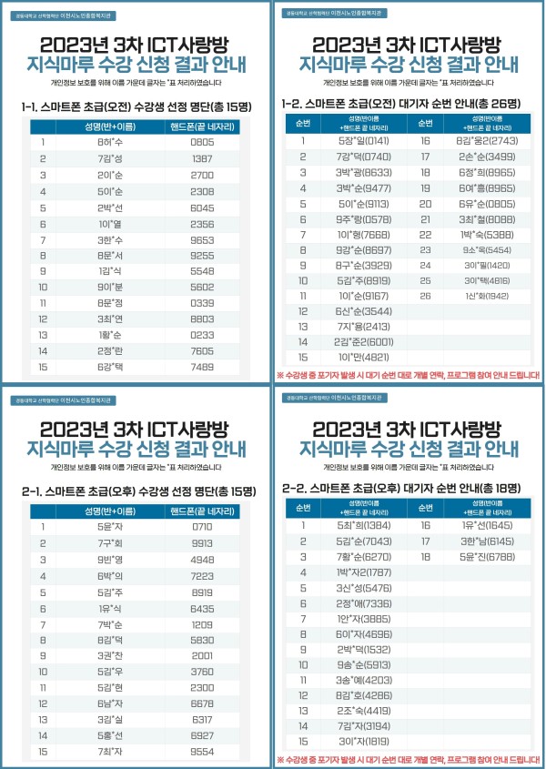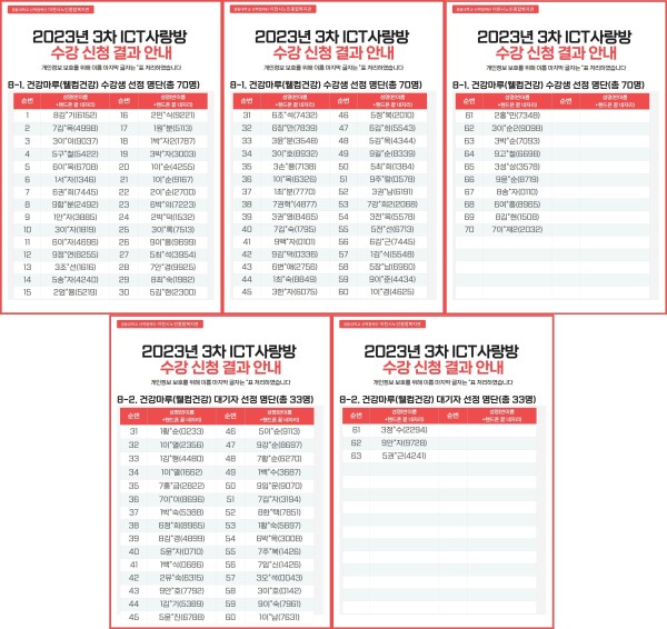 [공지] 2023년 3차 ICT사랑방 프로그램 수강 신청 결과 안내