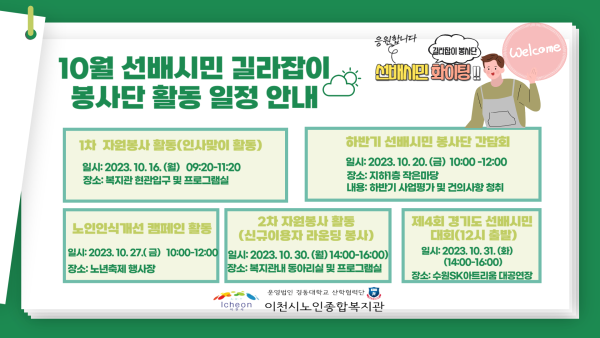 2023년 10월 선배시민자원봉사단 활동일정 안내