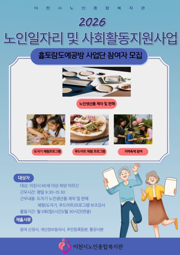 2026년 노인사회활동지원사업 흙토람도예공방 참여자 모집 공고