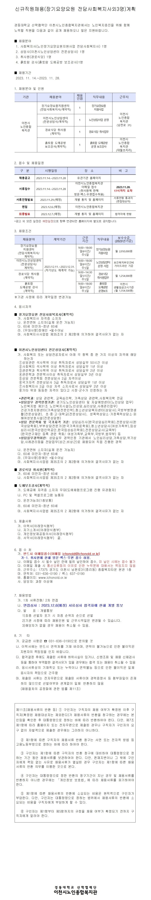 - 이전글이천시노인종합복지관 신규직원 (응급관리요원 전담사회복지사) 채용 공고 2023-11-17