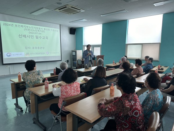 지난 4일 선배시민 봉사단이 함께 모여 필수교육을 진행하였습니다.