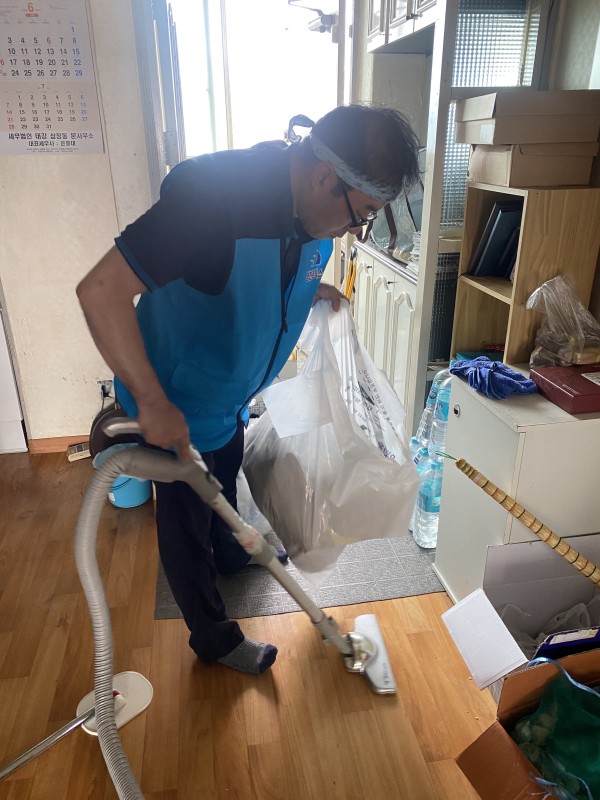 거실 및 안방, 작은방 바닥 청소, 먼지제거, 욕실청소, 쓰레기 분리수거 및 종량제쓰레기 배출 등 어르신에게 매우 큰 도움이 되었습니다.