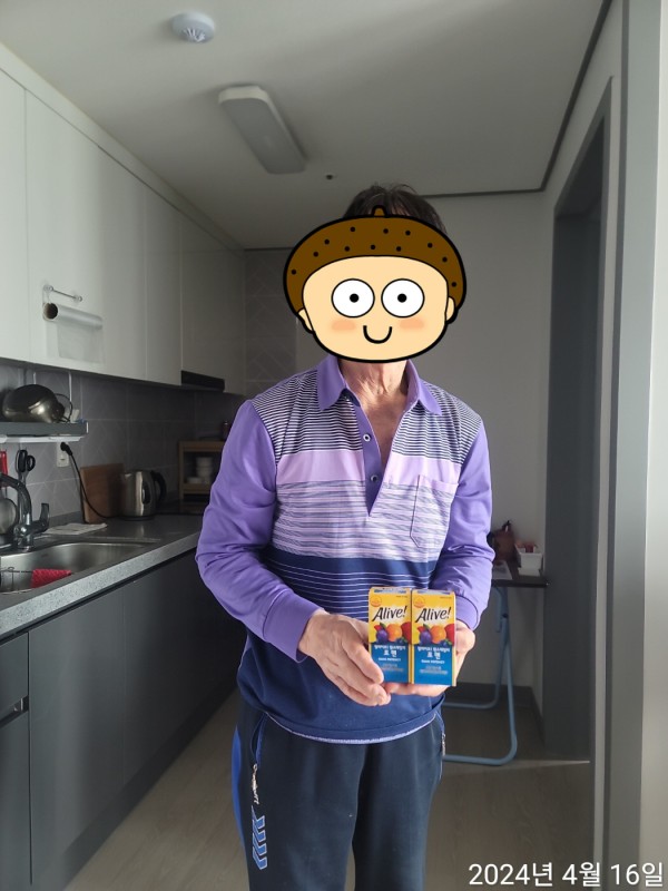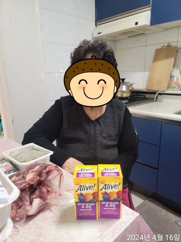 황혼육아 중인 어르신, 복지관 이용어르신들의 건강한 노후를 위해 '얼라이브 종합비타민'을 배분하였습니다.
