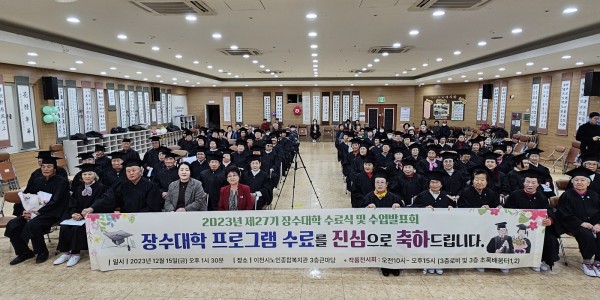 이천시노인종합복지관 3층 큰마당에서 제27기 장수대학 수료식 및 수업발표회를 진행하였습니다.