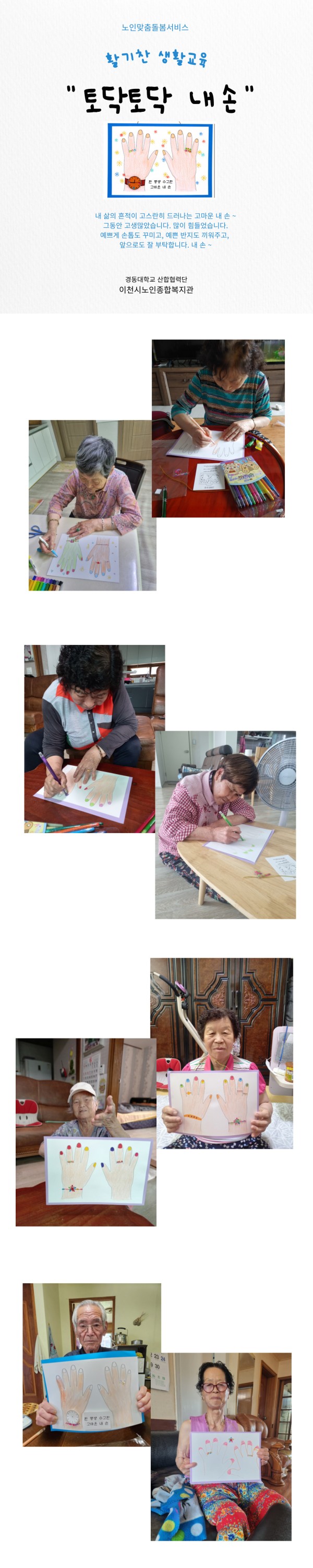 활기찬 생활교육(호법면, 백사면) 마지막 시간으로 "토닥토닥 내 손" 프로그램을 진행하였습니다.
