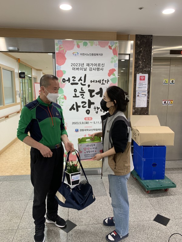 이날 행사를 통해 이천시노인종합복지관 취약계층 재가어르신인 밑반찬 서비스 수혜자 100명에게 카네이션 화분과 시금치크리스피롤세트를 전달하였고,