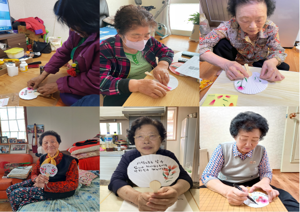 생활지원사 선생님들과 함께 부채에 원하는 글귀나 말을 적어보고