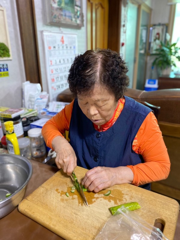 우리 어르신들의 칼질에서 전문가의 손길이 느껴졌습니다. 뚝딱뚝딱 준비된 재료들을 순식간에 썰어서 준비하시더라구요~