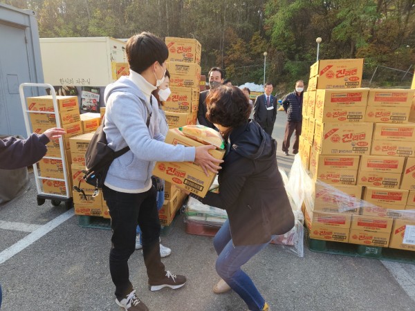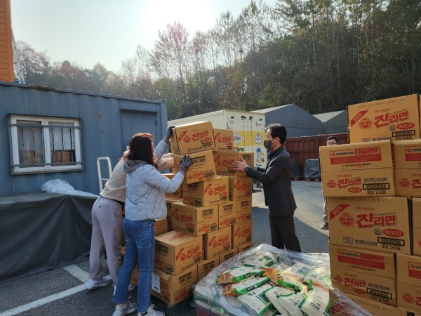 해피마트에서는 쌀(4kg) 100포, 라면 150상자를 후원해 주셨습니다.