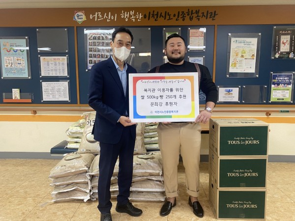 관내 경로식당을 이용하시는 어르신들을 위해 쌀 500kg와 빵 250개를 후원해주셨습니다.
