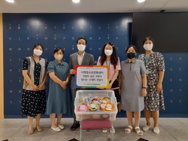 서희청소년문화센터 방과후아카데미팀에서 청소년 친구들이 정성스레 만든 수세미를 후원해주었습니다.