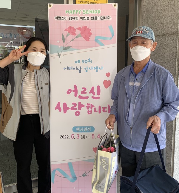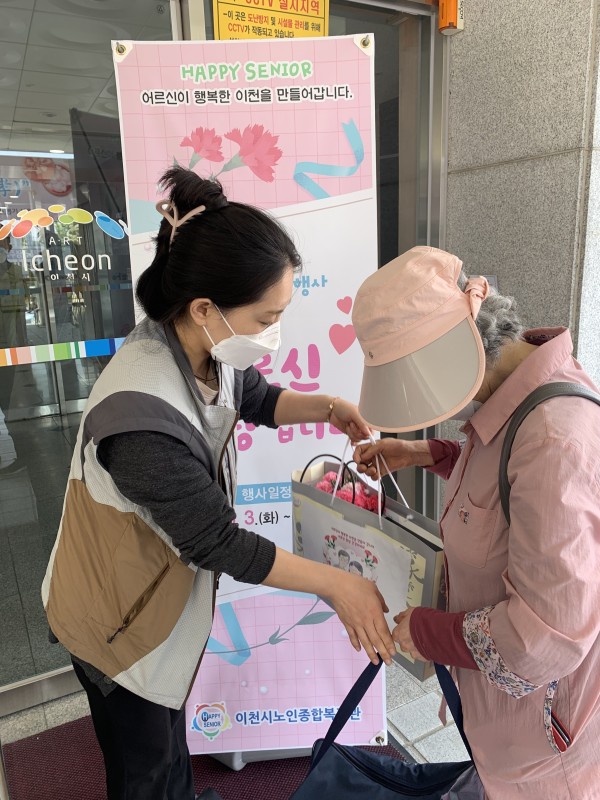 이날 행사를 통해 이천시노인종합복지관 취약계층 재가어르신인 밑반찬 서비스 수혜자 150명에게 카네이션 화분과 전병과자세트를 전달하였고,