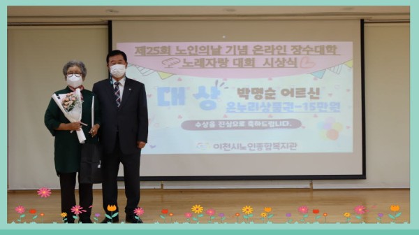 수상하신 어르신들 다시한번 축하드립니다.!! 이천시노인종합복지관에서는 앞으로도 어르신들의 행복한 노년 활기찬 노년의 꽃을 피울수