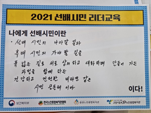선배시민의 활동목적과 취지를 다시한번 되짚어보는 시간이었습니다.