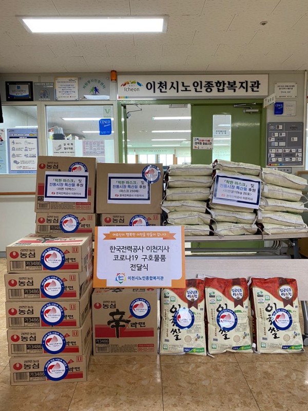 4월 29일 한국전력공사 이천지사(지사장 최홍숙)와 코로나19사태로 인해 어려움을 겪고 있는 이천시 취약계층 어르신들을 위해
