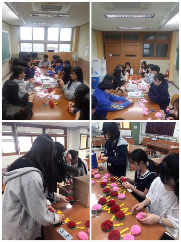 그 카네이션들은 이현고, 효양고 인터렉트 학생들이 손수 만들어주었습니다.