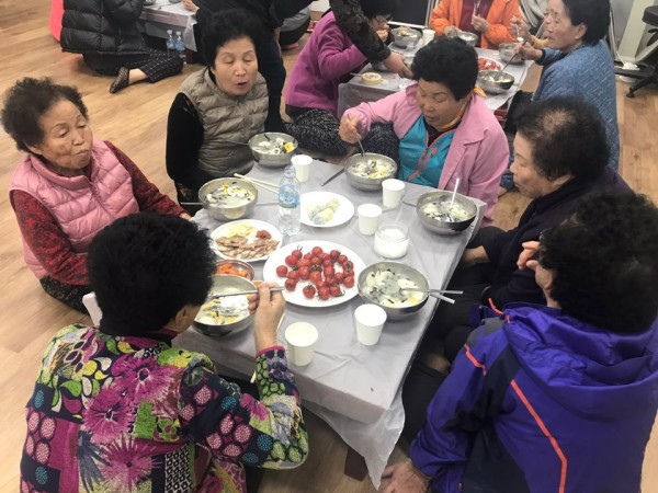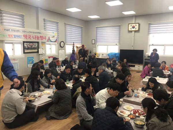 이에 수고해주시는 어르신들께 감사의 마음을 담아 이마트후레쉬센터 사원들이 직접 만든 따뜻한 떡국을 대접하였습니다.