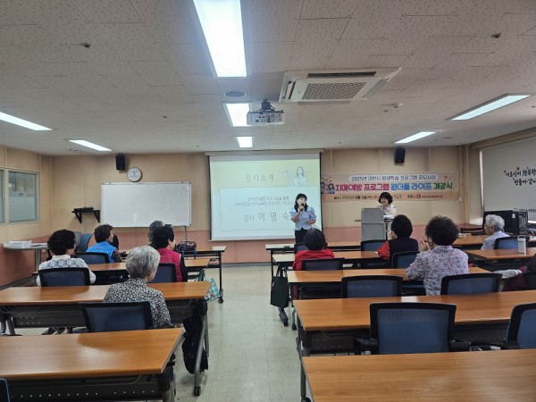 2025년 이천시 평생학습 프로그램 공모사업에 선정된 어르신 치매 예방 프로그램 '원더풀 라이프'의 개강식이