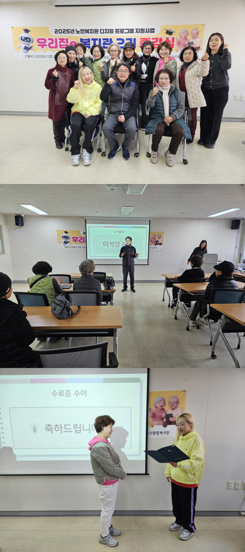 11월 26일(수)에 2025년 노인복지관 디지털 프로그램 지원사업 '우리집e 복지관' 2기 종강식이 진행되었습니다.